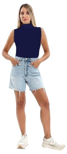 Cottonil - بلوزة برقبة عالية للنساء من قطونيل - لون أزرق غامق - مقاس اكس اكس اكس لارج (عبوة من 6 قطع)