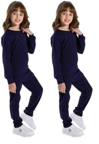 Cottonil - قطونيل طقم دفاية انترلوك (زغب داخلي) للبنات - ازرق غامق؛ 11-12 سنة (عبوة من قطعتين)