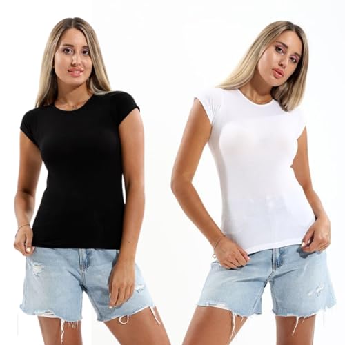 Cottonil - طقم فانلة قطن ليكرا من قطونيل باكمام قصيرة للنساء قطعتين