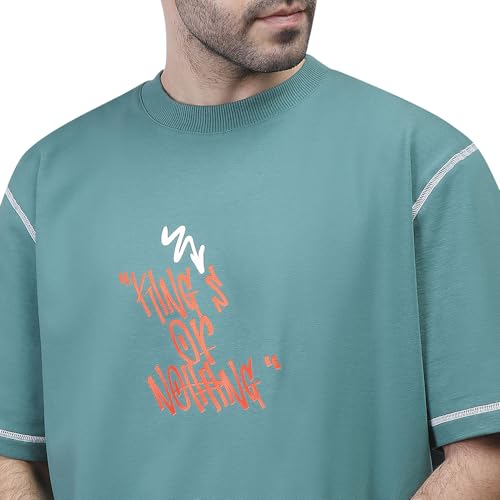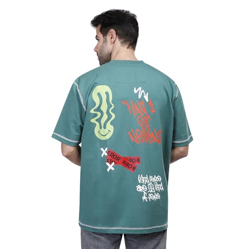 COUP - تيشرت للرجال من القطن بطبعة رسومات وقصة مريحة من كوب، أخضر، مقاس XL