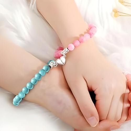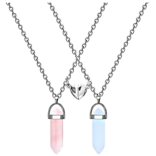Generic - مجموعة قلادات واساور كريستال متطابقة للازواج، تصميم قلب وقلادة، بينك وازرق