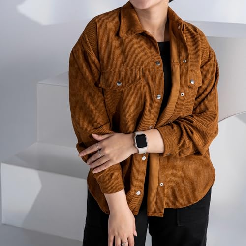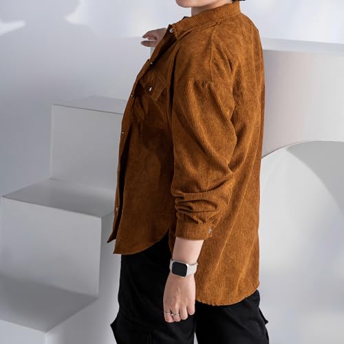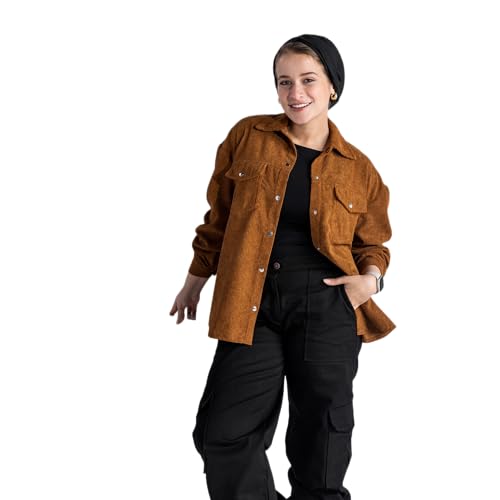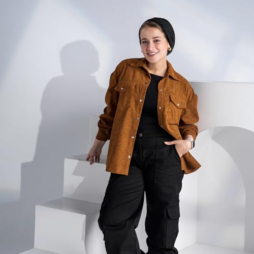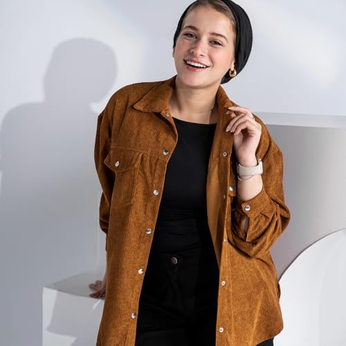 COZY UP IN STYLE - قميص من القطيفة المضلعة كوزي اب ان ستايل | نسيج كوردروي ناعم ومتين وجيوب امامية | جاكيت باكمام طويلة وازرار لجميع المواسم | دافئ ومريح