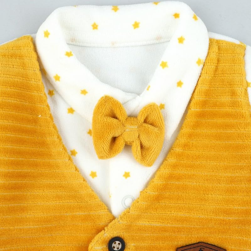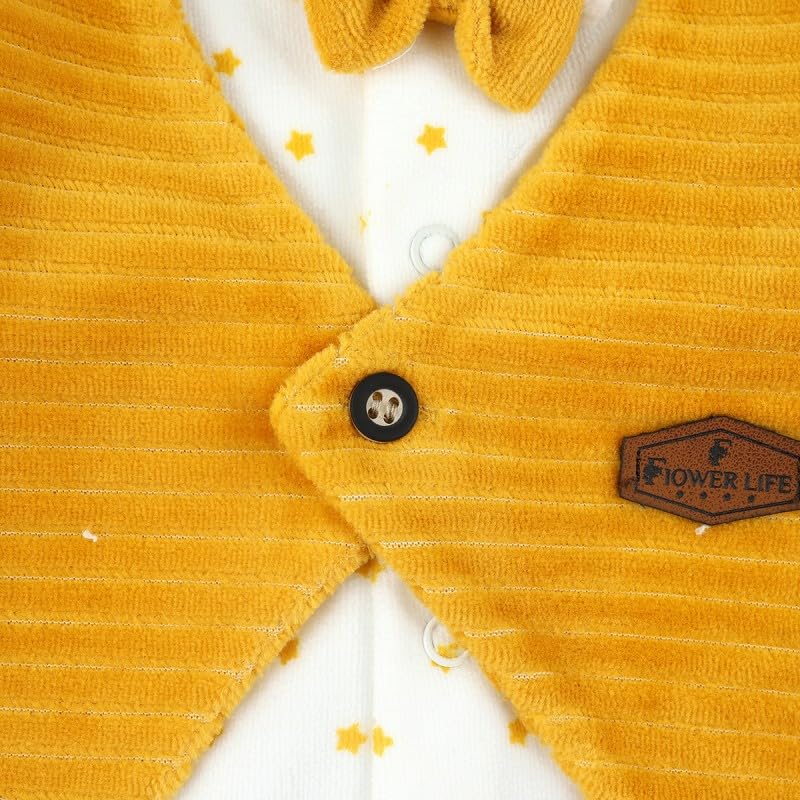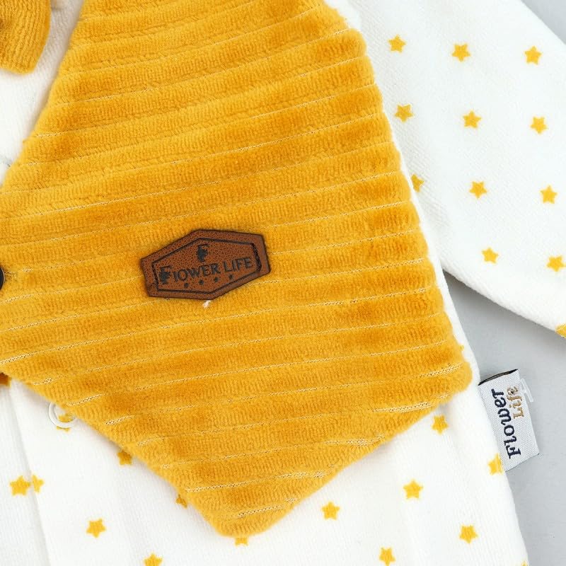 Generic - طقم قطيفة للاولاد البيبي من كوزي باللونين الاصفر والابيض | 6-9 اشهر | فلاور لايف