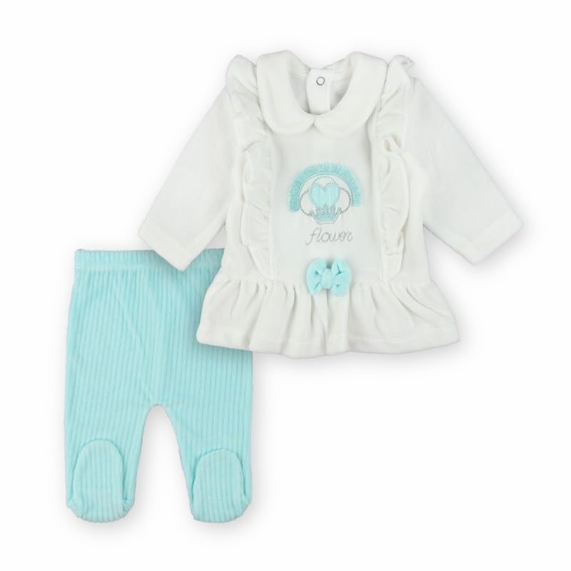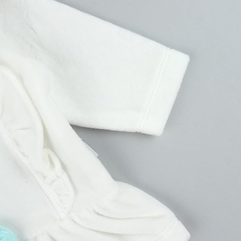 Generic - طقم قطيفة للبنات البيبي من كوزي، تركواز وابيض | 0-3 اشهر | فلاور لايف