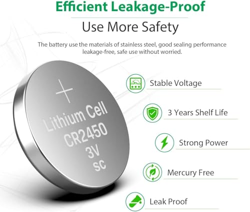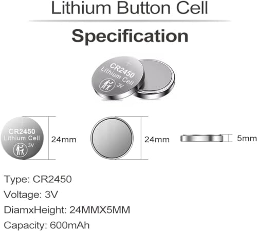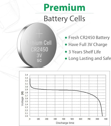 - سعة عالية حقيقية 550 مللي أمبير في الساعة -- بطارية ليثيوم CR2450، عمر بطارية طويل. خفيفة الوزن، جهد عالي وكثافة طاقة عالية.