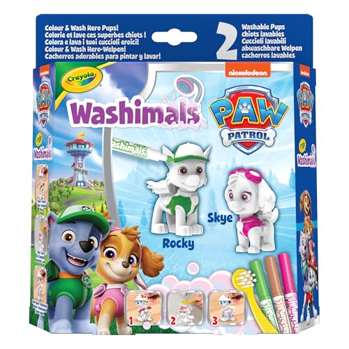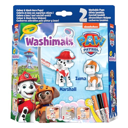 Crayola - كرايولا - مجموعة أنشطة باو باترول من واشيمالز مع 2 جرو، 3 اقلام وفرشاة بطرف من اللباد قابلة للغسل، لعبة وهدية للاطفال، من عمر 3 سنوات، 74-0287