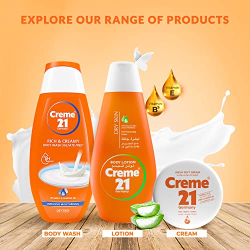 Creme 21 - لوشن الجسم للبشرة الجافة مع فيتامين اي وجل الصبار من كريمي 21، 400 ملليلتر