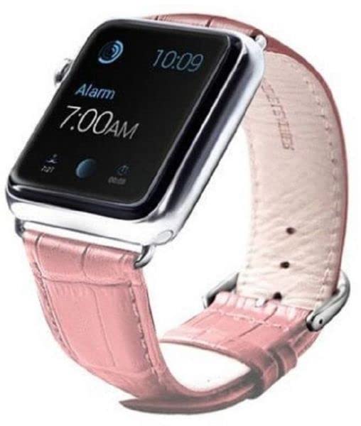 Generic - سوار ساعة كروكودايل من الجلد الاصلي للساعة الذكية 38 ملم - بينك، متعدد