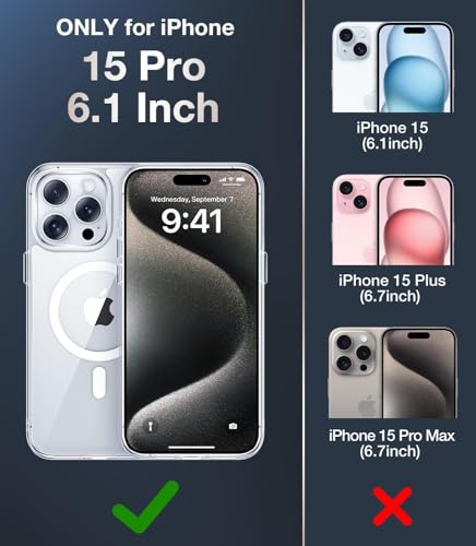 ZUNYSHA - جراب شفاف رفيع اكريليك كريستال متوافق مع ماج سيف، مضاد للاصفرار ومضاد للصدمات ومضاد للخدش وخفيف الوزن، غطاء حماية مغناطيسي شفاف لموبايل آيفون 15 برو 6.1 بوصة