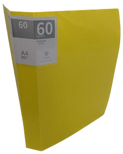 Clever - دفتر شفاف مخطط من 60 جيبًا شفافًا من كليفر، ايه 4، أصفر