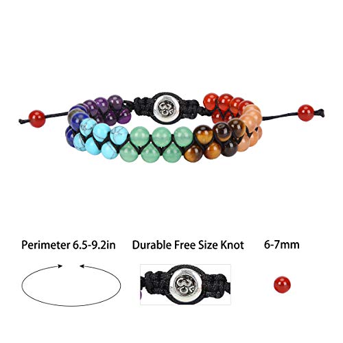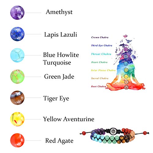 CUKEYOUZ - سوار من كوكيوز من خرز الشاكرا، به 7 أحجار شاكرا كريستالية ذات فاعلية للتوازن، مناسب لتمارين اليوجا، والتأمل والاسترخاء والتخلص من القلق، سوار للرجال والنساء, حجر, العقيق