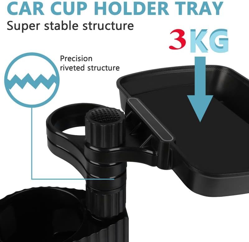 - 【تصميم صينية دوارة 360 درجة】صينية 16 × 23 سم، لتناول الطعام والترفيه في السيارة، يمكنك إرضاء تناول الطعام في السيارة أثناء مشاهدة موبايلك للترفيه. يمكن استخدام صينية حامل أكواب السيارة لحمل الطعام والوجبات الخفيفة وبطاقات الائتمان والمفاتيح والهواتف والعملات المعدنية والمزيد. يمكن إزالته في حالة عدم الحاجة إليه وعند إزالته يصبح هيكل حامل أكواب مزدوج.