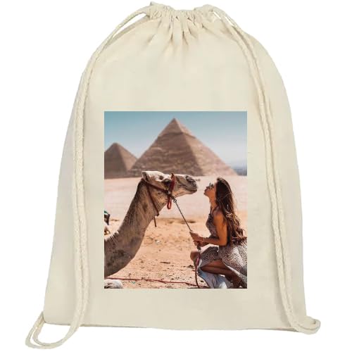 Generic - شنطة ظهر برباط مع صورة مخصصة، شنطة قماشية، بيج