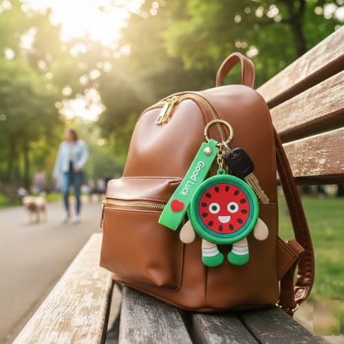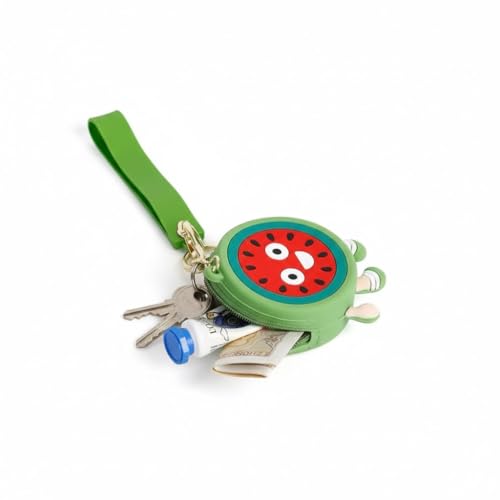 ميدالية مفاتيح على شكل فاكهة ، حلقة مفاتيح معدنية، مشبك معدني، حزام سيليكون ، محفظة صغيرة بسحاب