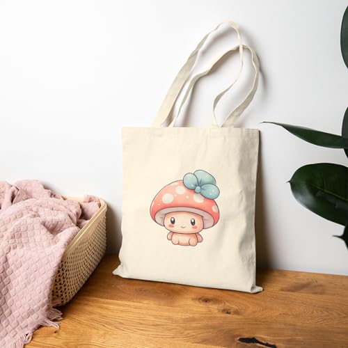 Generic - شنطة يد كبيرة توت من القماش بتصميم فطر لطيف بسوستة - 882