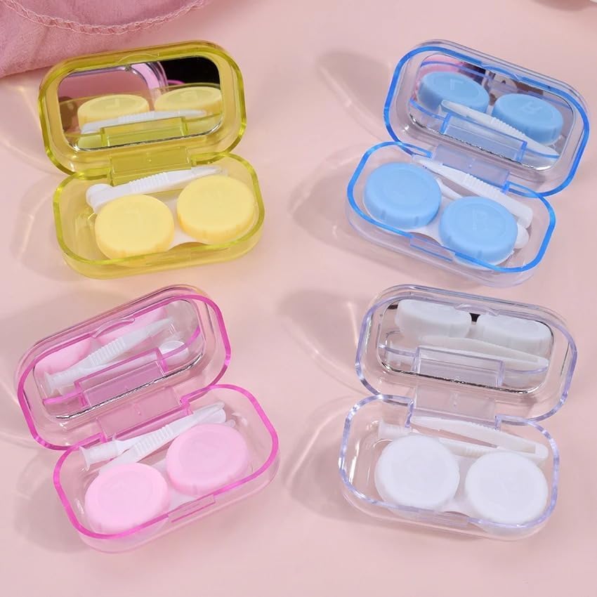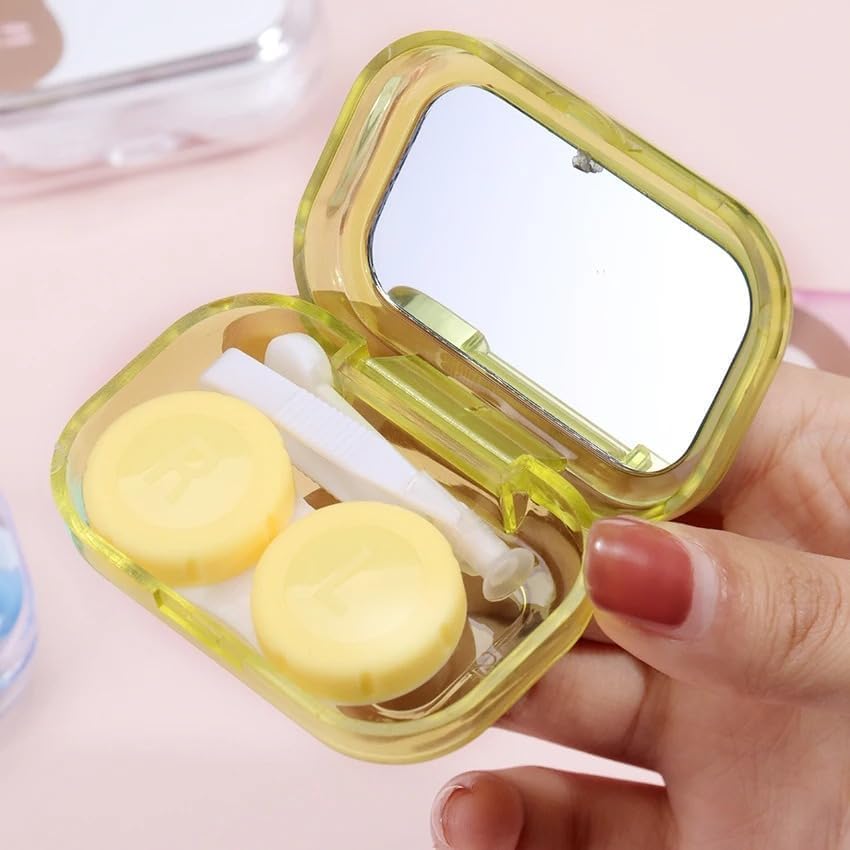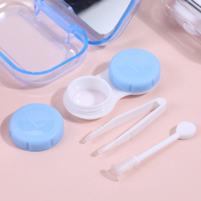 Generic - حافظة عدسات لاصقة صغيرة للجيب لطيفة، مجموعة السفر، حامل تخزين للعناية بالعين، مجموعة سهلة الحمل، مراة + ملاقط + وصلة عصا + حامل عدسات - متعدد الالوان