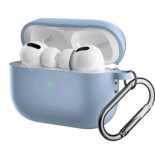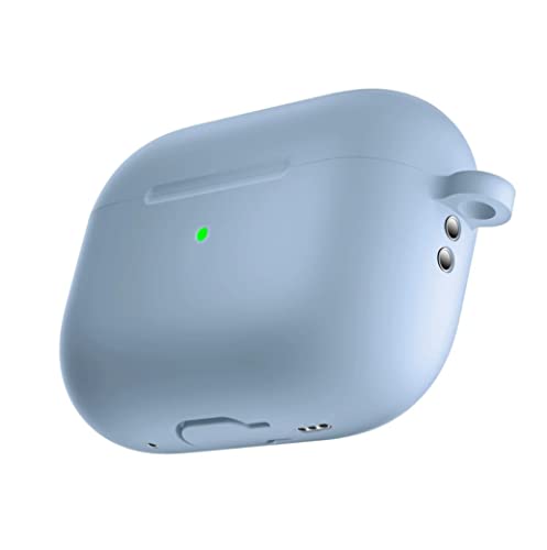 Dado - جراب من السيليكون الناعم بتغطية كاملة وضوء LED امامي مرئي مع سلسلة مفاتيح لعلبة سماعات ايربودز برو الجيل الثاني لون ازرق سماوي دادو سيليكون
