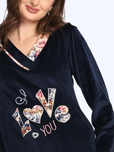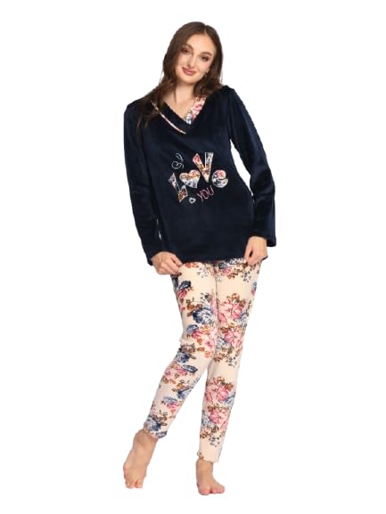 Dadoush - طقم بيجامة نسائي مع طباعة زهور، مقاسات كبيرة ،بيجامة حريمي قطيفة من دعدوش ،