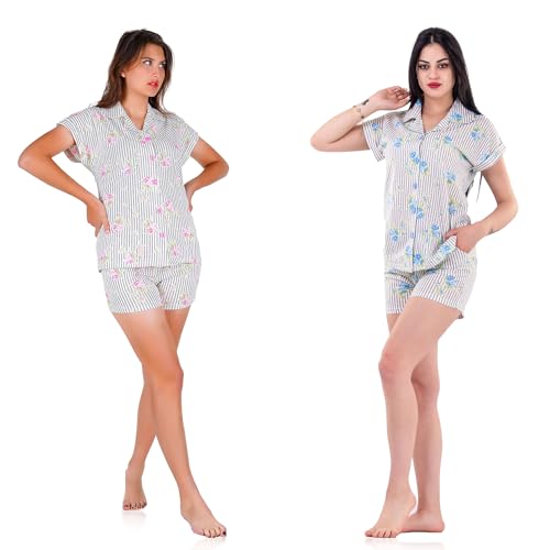 Dadoush - بيجاما صيفي حريمي قطعتين - طقم بيجاما تيشرت وبنطلون قصير من دعدوش