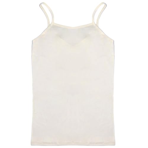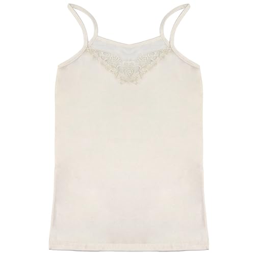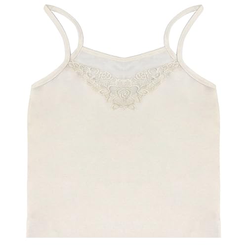 Dahab - فانلة قطن سادة بحمالات رفيعة وجزء دانتيل امامي للنساء من دهب - لون بيج، مقاس M