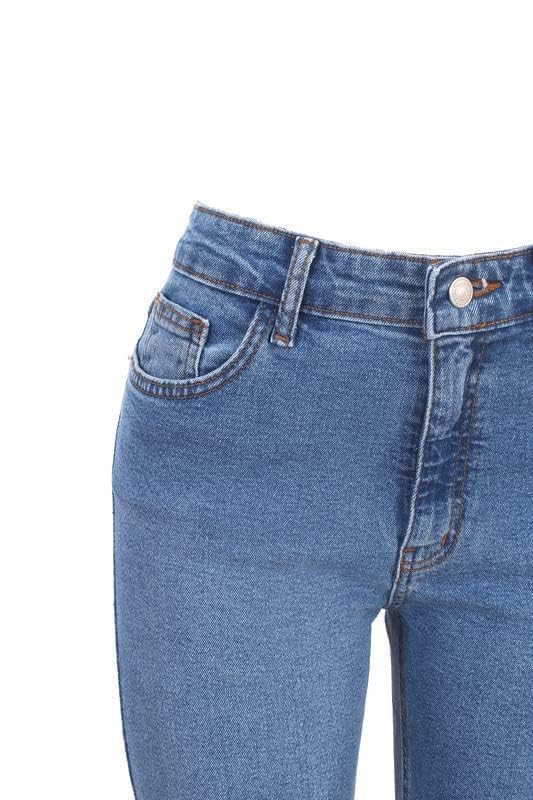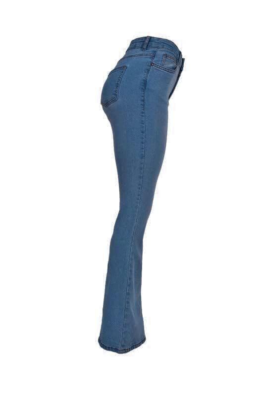 DALY - بنطلون جينز ليكرا بقصة تشارلستون وخصر منخفض للنساء من دالي، مقاس M لون ازرق -$P