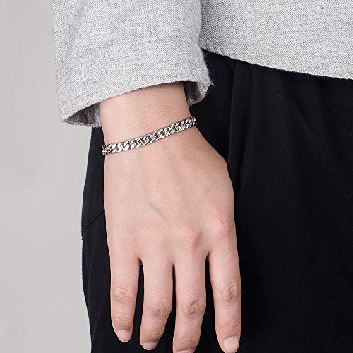Dankadi - دانكادي سوار كلاسيكي عصري للرجال من الفضة الاسترلينية 925 بنسبة 100% بنمط بانك سلسلة كوبية الصلبة 6.5 ملم - 3 7-9 انش هدية مجوهرات للاولاد 9 فضي عقيق بوتسوانا