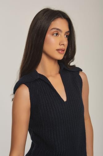 DARE - دير فيست فانسي منسوج بياقة للنساء من دالي دريس، لون كحلي، مقاس S