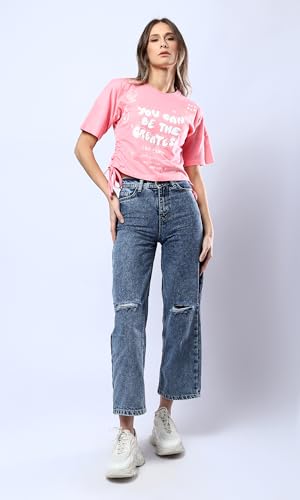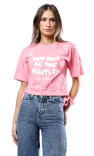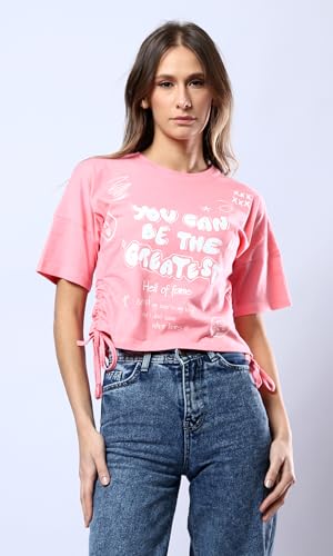 ريفين تي شيرت نسائي قصير بلون وردي داكن مع رباط جانبي، لون روز، مقاس M