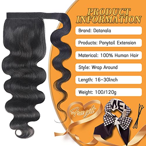 datanala - شعر بشري برازيلي طبيعي مموج بتسريحة ذيل الحصان من داتانالا، وصلة شعر بشري ريمي 100% بتسريحة ذيل الحصان للنساء ذوات البشرة السمراء، لون طبيعي (40.6 سم/حديث، ذيل حصان مموج)