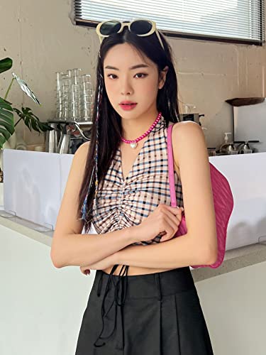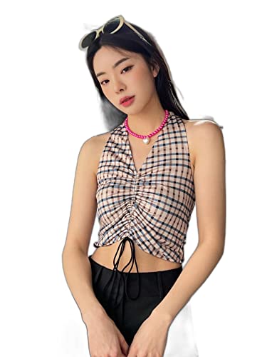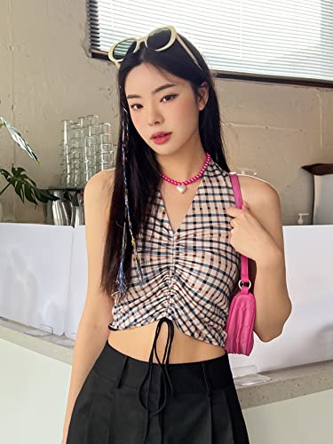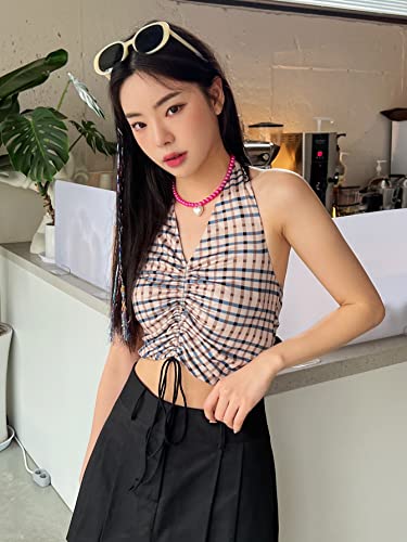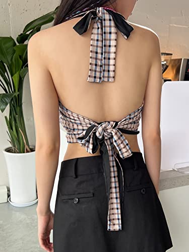 SHEIN - بلوزة كاروهات برباط امامي بدون ظهر وعقدة من دازي