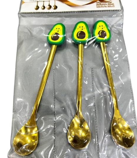 - مزايا التصميم: مجموعة من 3 ملاعق ذهبية ساحرة مزينة بمقابض مزخرفة بطابع الأفوكادو لإضفاء لمسة مرحة
