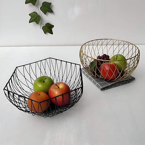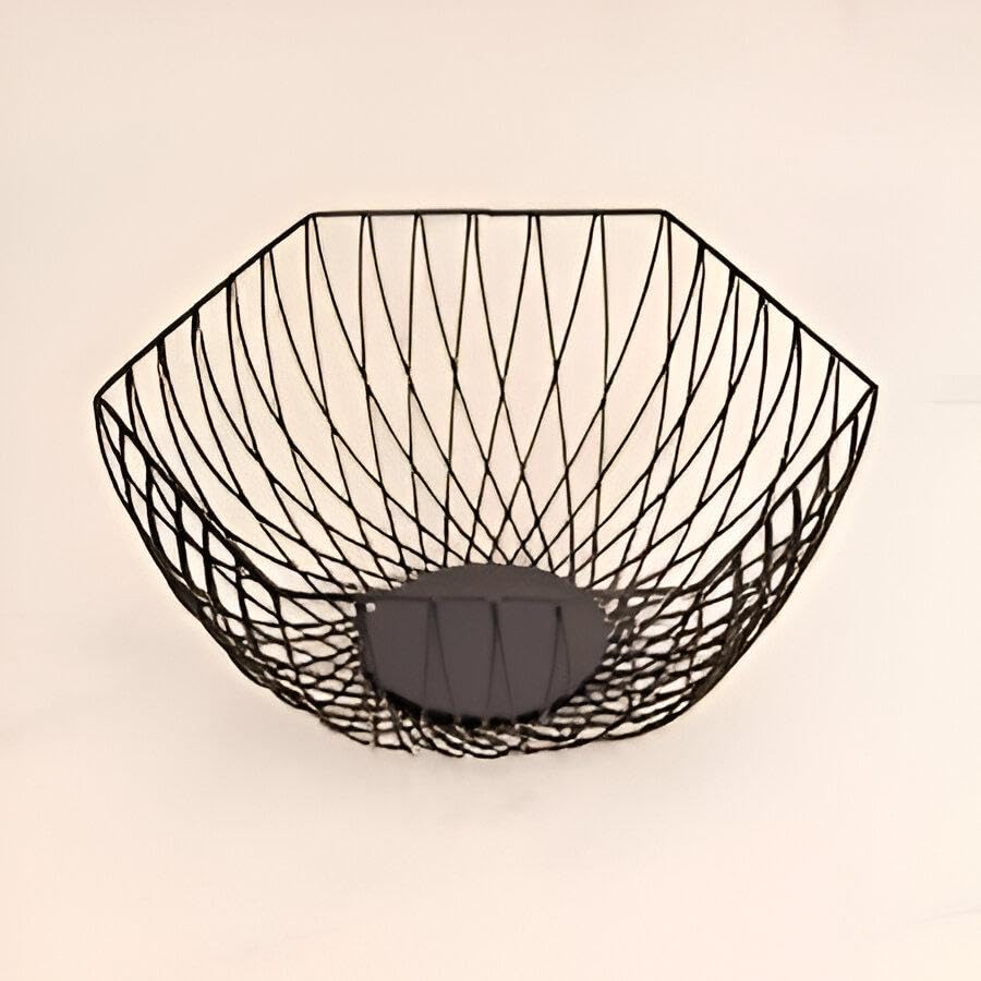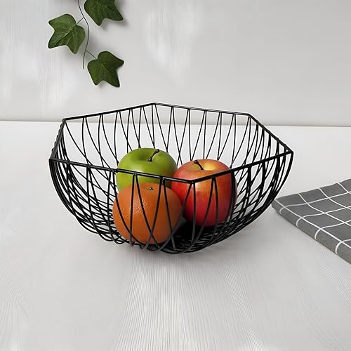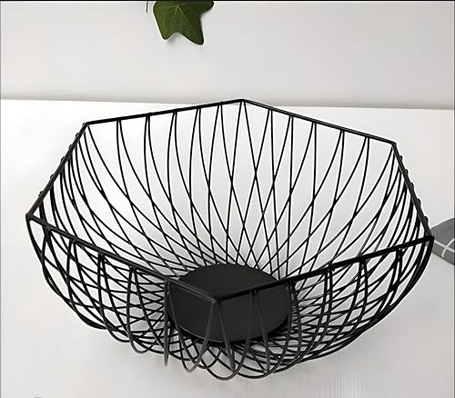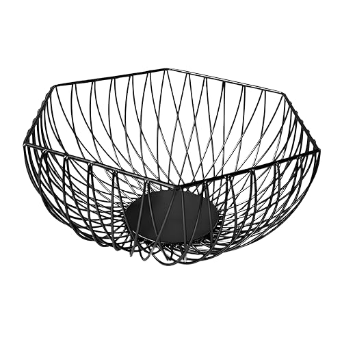 Generic - قطع زينة وسطية وسلة فواكه من سلك الحديد الأسود للمطبخ، تخزين واسع للفواكه والخضروات واكسسوار ديكور منزلي حديث