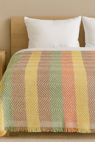 Generic - بطانية ديكور مخططة للسرير بنقشة بخطوط شيفرون وحافة بشراشيب متعددة الألوان مع خطوط (متعددة الألوان 5)