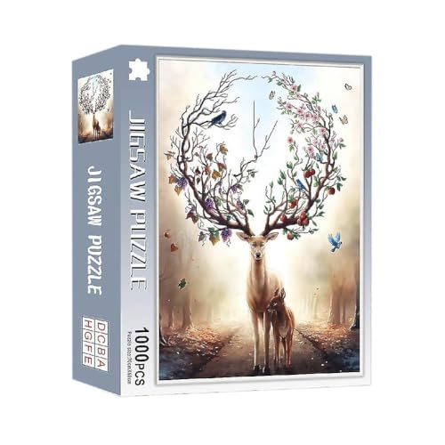 • تصميم ساحر: يتميز هذا البازل برسم توضيحي معقد لغزال مهيب محاط بالفروع وأوراق الشجر، مما يخلق مشهدًا آسرًا.