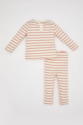 DeFacto - بيجامة محبوكة للبنات البيبي بقصة عادية ورقبة بأزرار وأكمام طويلة من ديفاكتو B7744A5، قطعتين