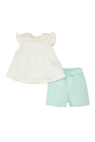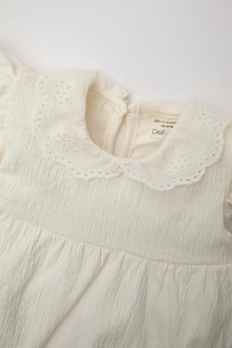 DeFacto - طقم ملابس للبنات البيبي مصنوع من نسيج محبوك من ديفاكتو، مكون من بلوزة بقصة عادية وأكمام قصيرة ورقبة مزينة بدانتيل وبنطلون، C5168A5