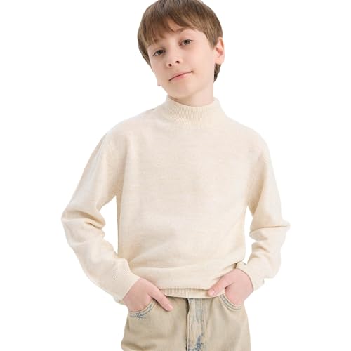 DeFacto - بلوفر تريكوF1068A8 غير رسمي بقصة عادية وياقة واقفة وأكمام طويلة للأولاد من 8 إلى 9 سنوات من ديفاكتو، لون بيج (اكرو ميلانج)