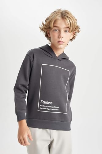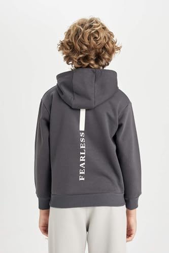 DeFacto - سويت شيرت بغطاء رأس منسوج بقصة عادية وأكمام طويلة وتصميم حديث للأولاد البيبي من ديفاكتو D3095A8