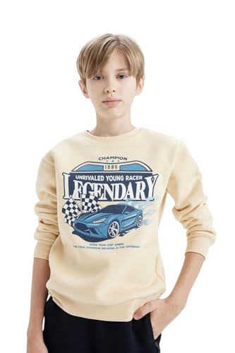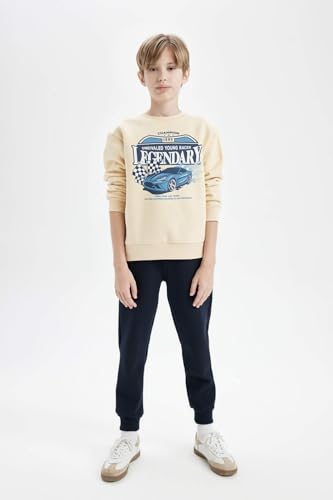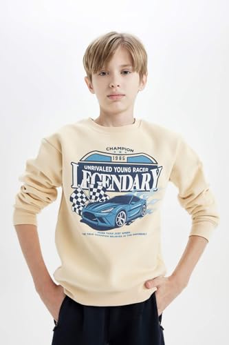 DeFacto - سويت شيرت منسوج بقصة عادية ورقبة دائرية ضيقة وأكمام طويلة من ديفاكتو للأولاد D3051A8
