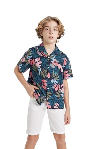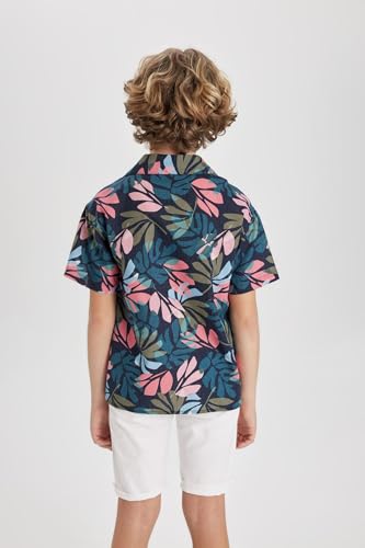 DeFacto - قميص بأكمام قصيرة ورقبة ريزورت بمقاس كبير للأولاد B8962A8 من ديفاكتو
