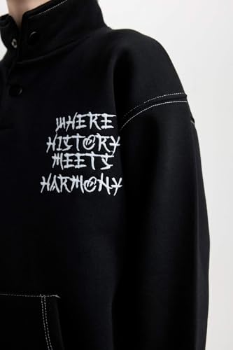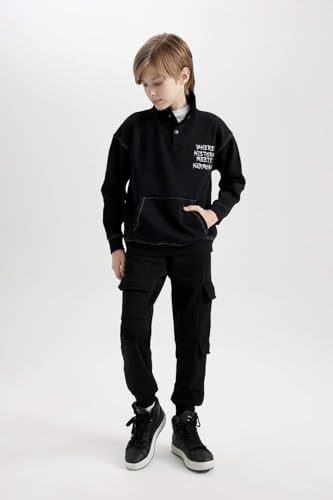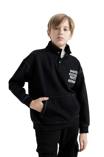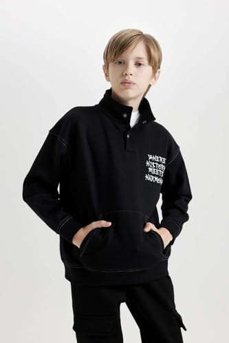 DeFacto - سويت شيرت منسوج بأكمام طويلة ورقبة مرتفعة وقصة واسعة للأولاد موديل D5676A8 من ديفاكتو