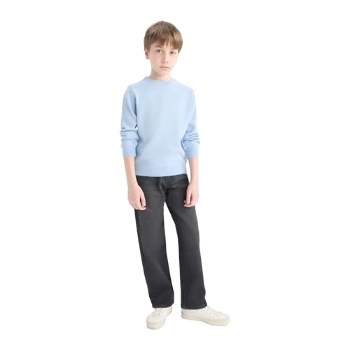 DeFacto - بلوفر تريكو كاجوال بقصة عادية وقبة دائرية ضيقة وأكمام طويلة للأولاد A4992A8 من ديفاكتو (عبوة من 1 قطعة)