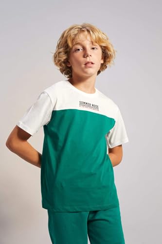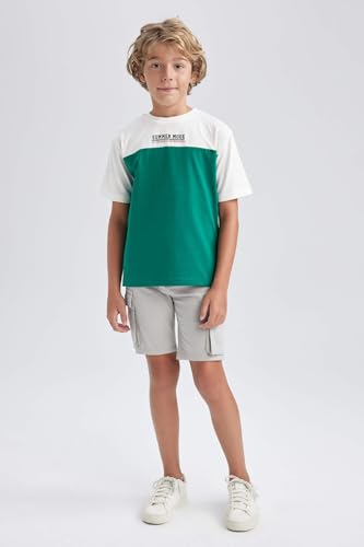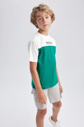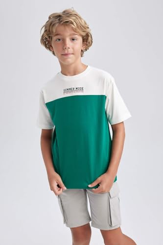 DeFacto - تيشرت من قماش منسوج بقصة عادية ورقبة دائرية ضيقة وأكمام قصيرة للأولاد من ديفاكتو، A9302A8