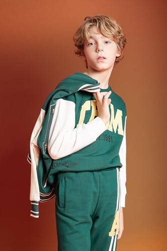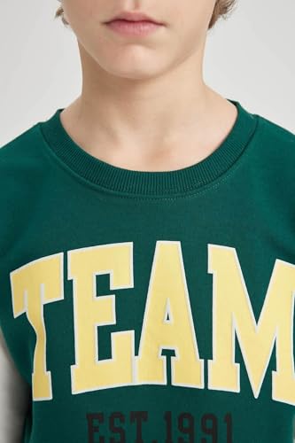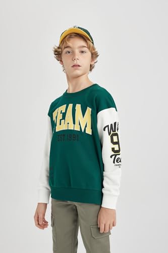 DeFacto - سويت شيرت من ديفاكتو للأولاد مصنوع من القطن والفيسكوز والبوليستر باللون الأخضر الداكن مقاس 8/9 سنوات