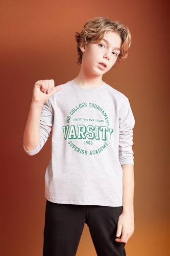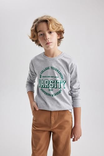 DeFacto - ديفاكتو تيشرت منسوج باكمام طويلة ورقبة دائرية ضيقة وقصة عادية للاولاد - B7286A8 عصري