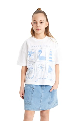 DeFacto - تيشرت منسوج بأكمام قصيرة بقصة واسعة للبنات من ديفاكتو، B5128A8