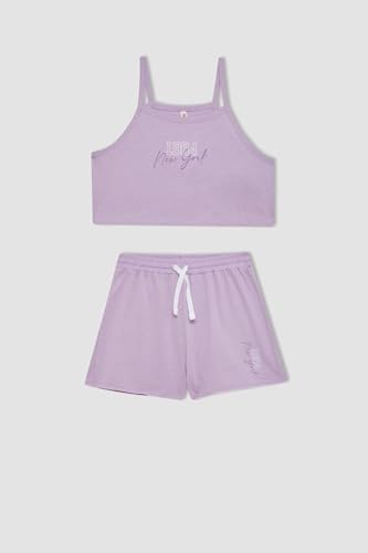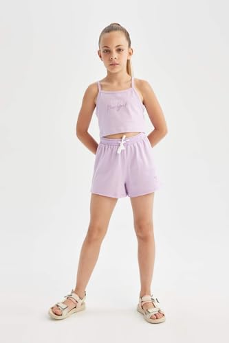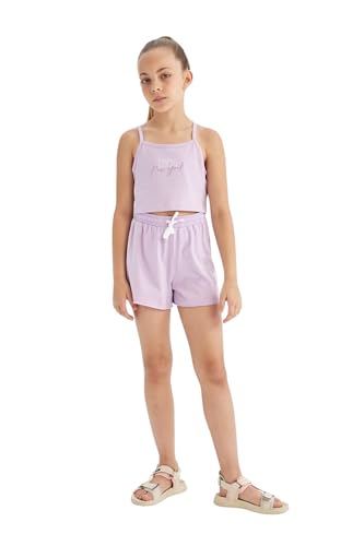 DeFacto - طقم ملابس مكونة من توب كات وشورت منسوج للبنات من ديفاكتو، D0066A8