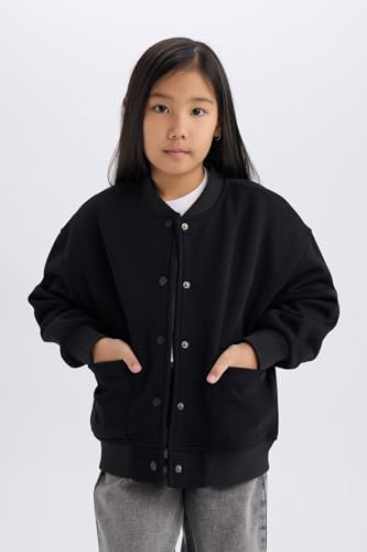 DeFacto - كارديجان منسوج D0701A8 بقصة واسعة ورقبة دائرية ضيقة وأكمام طويلة للبنات من ديفاكتو، سويت شيرت بتصميم منسوج