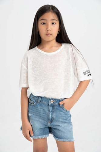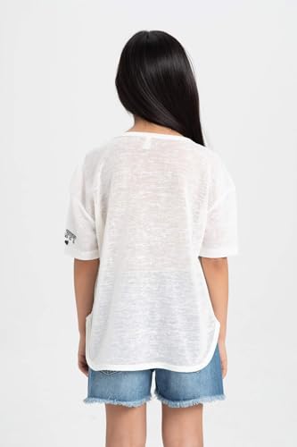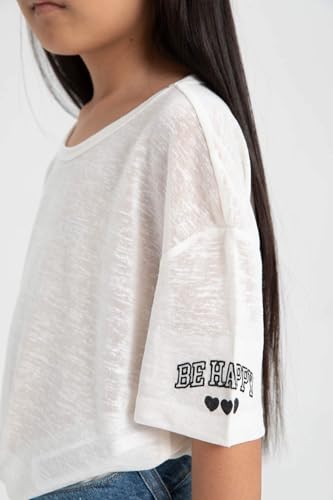 DeFacto - تيشرت بأكمام قصيرة منسوج للبنات مقاس كبير من ديفاكتو، C4606A8