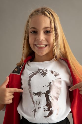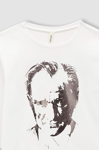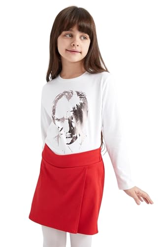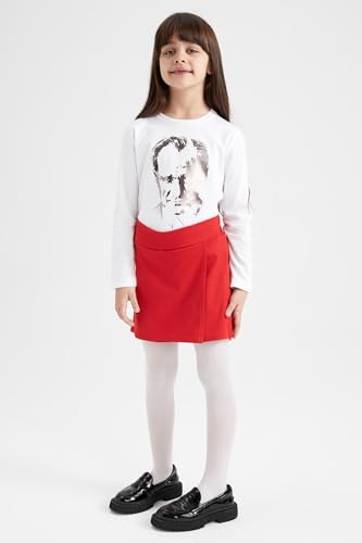 DeFacto - تيشرت منسوج بأكمام طويلة وقصة عادية ورقبة دائرية للبنات Y5593A6 من ديفاكتو
